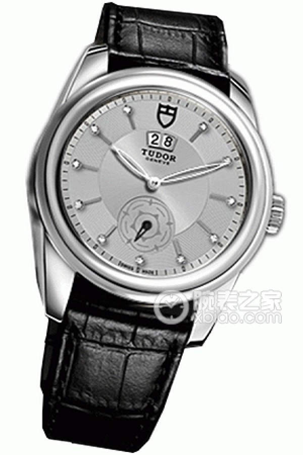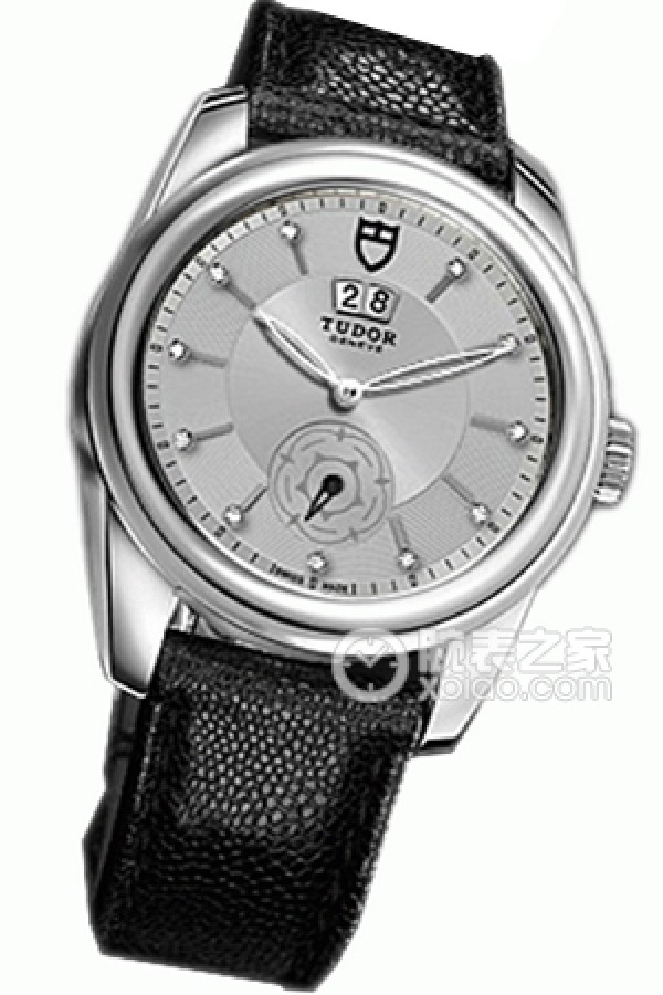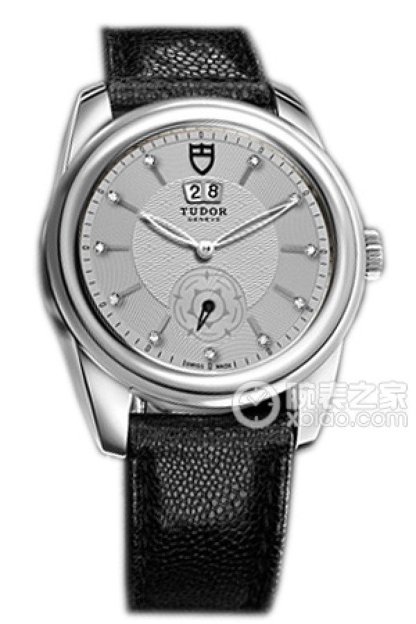 Tudor Grandeur 57000 Silver Dial with Diamond-Studded Black Leather Strap Automatic machinery, stainless steel, 42mm