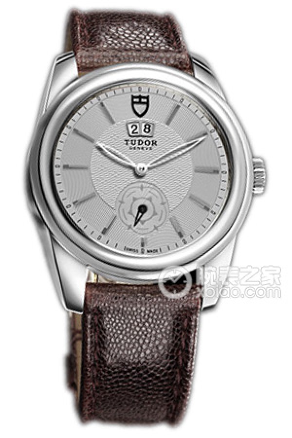 Tudor Grandeur 57000 with silver dial and burgundy Javanese leather strap Automatic machinery, stainless steel, 42mm