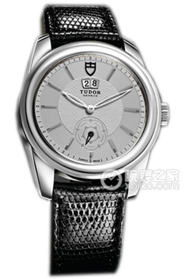 Tudor Grandeur 57000 with silver dial and black lizard leather strap Automatic machinery, stainless steel, 42mm