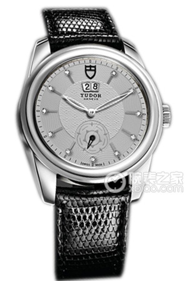 Tudor Grandeur 57000 with silver dial, diamond pattern, and black lizard leather strap Automatic machinery, stainless steel, 42mm