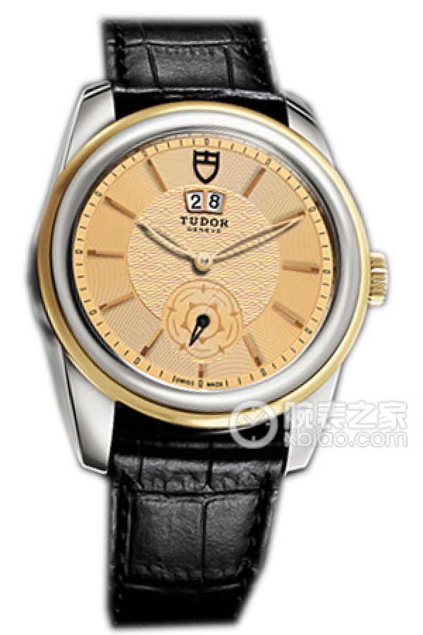Tudor Grandeur 57003 with gold dial and shiny black genuine leather strap Automatic machinery, stainless steel, 42mm