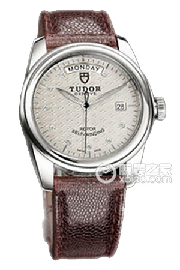 Tudor Jade 56000 - Silver jacquard with diamonds and a burgundy Javanese leather strap Automatic machinery, stainless steel, 39mm