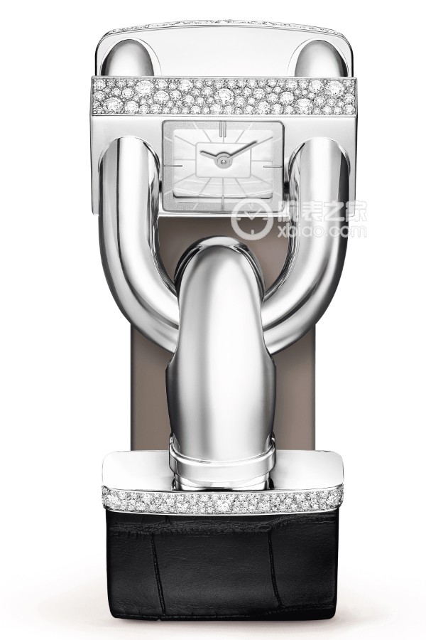 Van Cleef & Arpels CADENASVCARO4IM00 Quartz, 18k white gold set with diamonds, bezel pavé-set with round diamonds, 14x26mm