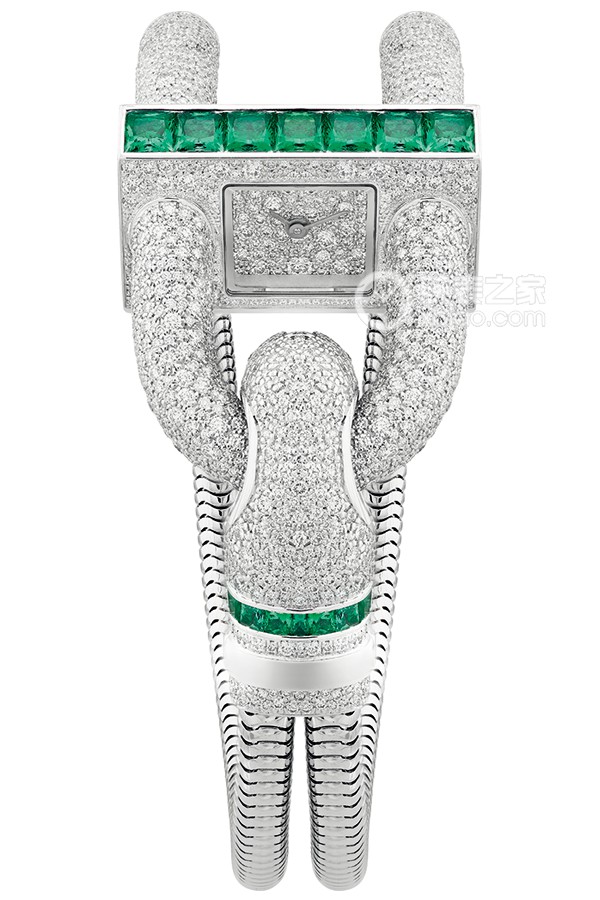 Van Cleef & Arpels CADENAS VCARO 8Q500 Quartz, 18k white gold set with diamonds and emeralds, 26x14.5mm
