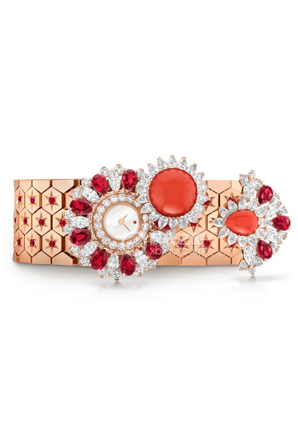 Van Cleef & Arpels High Jewelry Watch VCARPBM100 Quartz, 18k gold, set with pink sapphires
