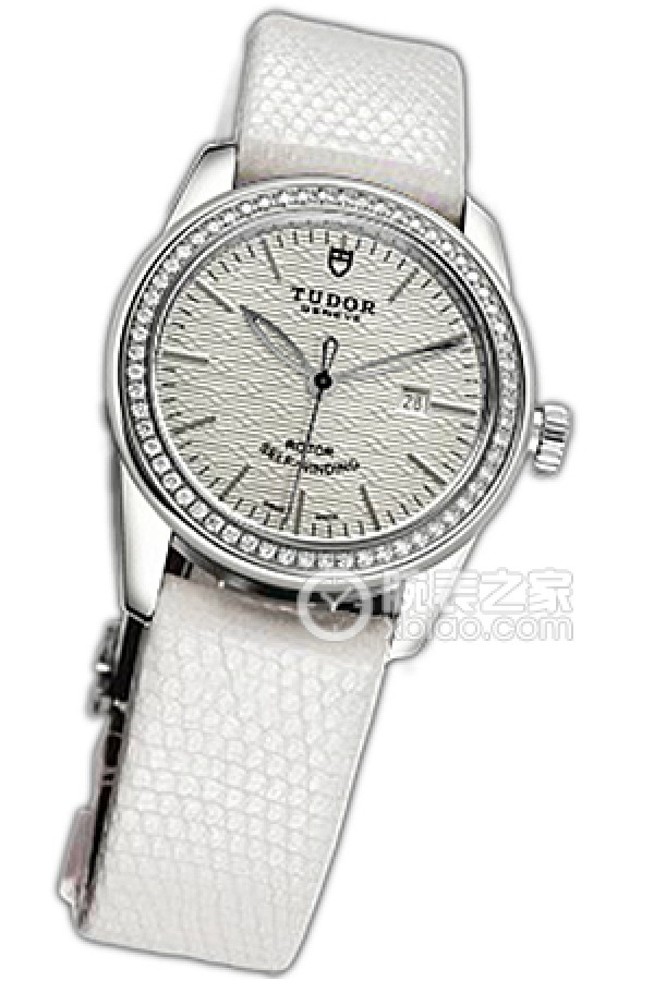 Tudor Grandeur 53020 - White Dial, Stainless Steel with Diamond Set, White Patent Leather Strap Automatic machinery, stainless steel with diamond inlay, 31mm