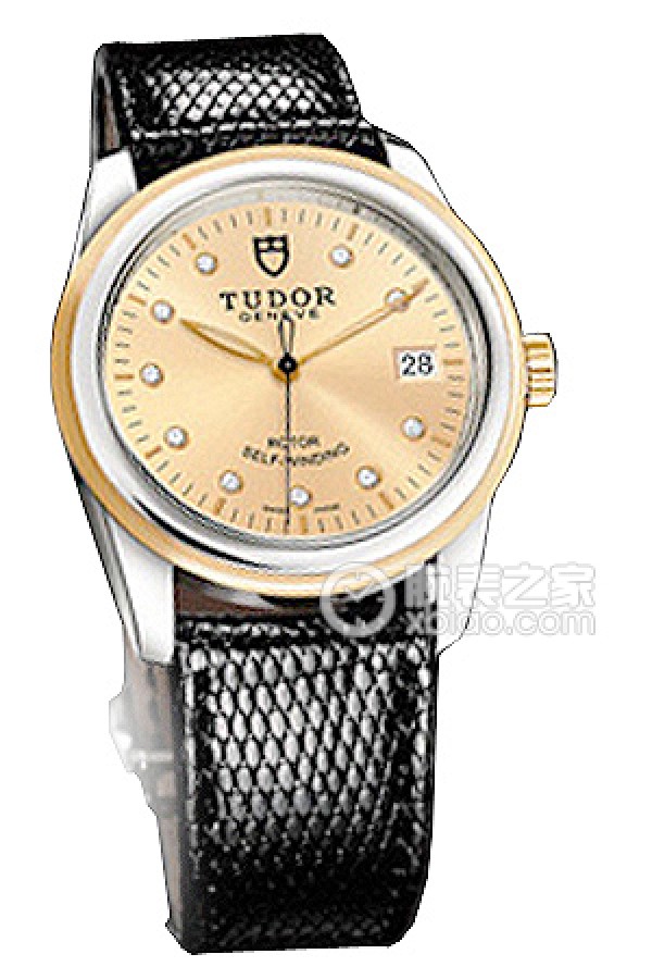 Tudor Junjue 55003-LS Black Dial with Diamonds, Gold Bezel, and White Lizard Leather Strap Automatic machinery, precision steel, 36mm