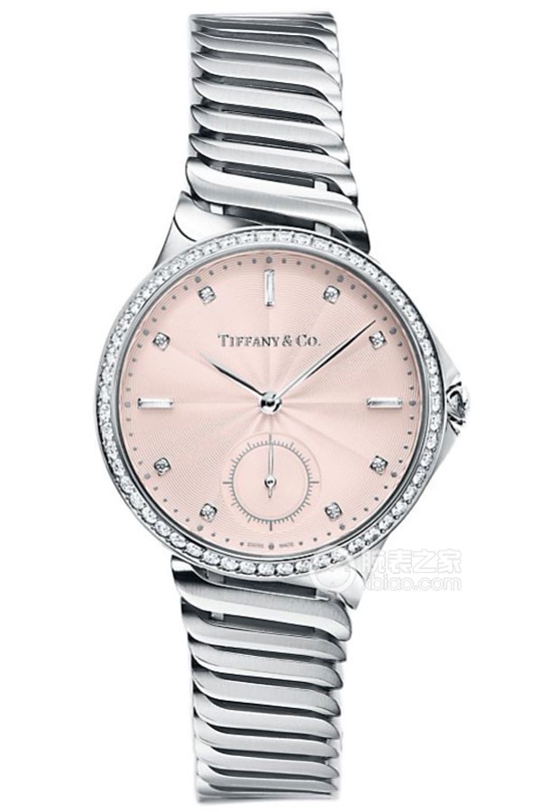 Tiffany Metro 2-Hand 34mm Pink Pad Automatic mechanical, stainless steel, set with round brilliant-cut diamonds, 34mm