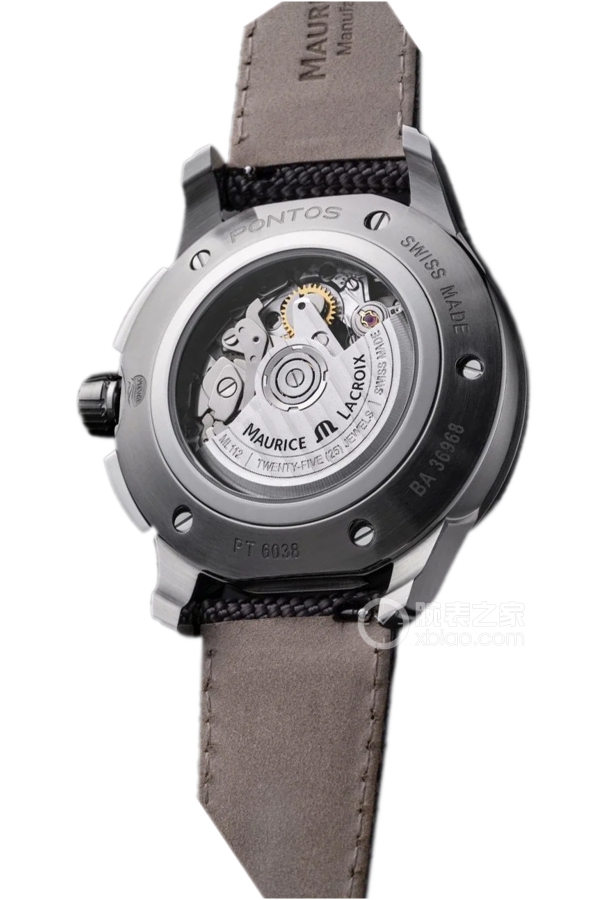 Basic Information: Model Number PT6038-SSL2H-130-A; Brand: Maurice Lacroix; Series: Pentau; Movement Type: Automatic Mechanical; Gender: Men’s; Official Warranty: 2 Years; Movement Model: ML112; Movement Type: Automatic Mechanical; Manufacturer: Maurice Lacroix; Frequency: 28,800 vibrations per hour; Number of Jewels: 25; Power Reserve: 48 hours; Appearance: Case Diameter: 43mm; Case Thickness: Not Available; Dial Color: White; Dial Shape: Round; Strap Color: Gray/Silver; Clasp Type: Butterfly Clasp; Case Back: Not Available; Weight: Not Available; Water Resistance: 100 meters; Hour Marker Type: Bat; Clasp Spacing: Not Available; Lug Spacing: Not Available; Materials: Case Material: Stainless Steel; Dial Material: Not Available; Bezel Material: Ceramic; Crystal Material: Sapphire Crystal; Crown Material: Stainless Steel; Strap Material: Nylon/Stainless Steel; Clasp Material: Stainless Steel; Functions: Date Display, Day Display, Chronograph