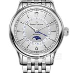 Basic Information Number: LC6037-PG101-330-2 Brand: Maurice Lacroix Series: Elegant Movement Type: Automatic Mechanical Gender: Men’s Movement Model: ML155 Movement Type: Automatic Mechanical Manufacturer: Maurice Lacroix Frequency: 28,800 vibrations per hour Power Reserve: 38 hours Appearance: Case Diameter: 38 mm Case Thickness: Not available Dial Color: Silver Gray Dial Shape: Round Strap Color: Brown Clasp Type: Folding Clasp Case Back: Transparent Weight: Not available Water Resistance: 30 meters Hour Marker Type: Bat-shaped Hour Markers Clasp Spacing: Not available Lug Spacing: Not available Materials: Case Material: 18k gold, polished Dial Material: Dials with fluted sections and rose gold-plated indicators, diamond-cut hour and minute bezel Material: 18k gold, polished Crystal Material: Domed sapphire crystal with anti-reflective coating Crown Material: Stainless steel Strap Material: Alligator leather Clasp Material: 18k gold, polished Functions: Date Display