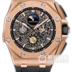 Basic Information: ID 26143PT.OO.D005CR.01; Brand: Audemars Piguet; Series: Jules Audemars; Movement Type: Automatic Mechanical; Gender: Men’s; Movement Model: Calibre 2875 Movement Type: Automatic Mechanical; Manufacturer: Audemars Piguet; Movement Diameter: 32.60 mm; Frequency: 21,600 vibrations per hour; Jewels: 41; Parts: 268; Power Reserve: 54 hours; Appearance: Case Diameter: 41 mm; Case Thickness: 11 mm; Dial Color: Dark Grey; Dial Shape: Round; Strap Color: Dark Grey; Clasp Type: Folding Clasp; Case Back: Transparent, Anti-reflective Sapphire Crystal; Weight: Not available; Water Resistance: 20 meters; Hour Marker Type: Bat; Clasp Spacing: Not available; Lug Spacing: Not available; Materials: Case Material: 950 Platinum; Dial Material: Sapphire Crystal, Semi-transparent Dark Grey Chronographs, Semi-transparent Dark Grey Dial; Outer Bezel: Rose Gold Applied Hour Markers and Hands; Bezel Material: Not available; Crystal Material: Anti-reflective Sapphire Crystal; Crown Material: Not available; Strap Material: Hand-stitched Square Alligator Leather; Clasp Material: 950 Platinum; Functions: Date Display, Power Reserve Display, Tourbillon.