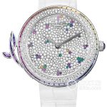 Basic Information: Model Number: 77244OR.GG.1272OR.01; Brand: Audemars Piguet; Series: Millenary; Gender: Ladies; Movement: Cal.5201; Manufacturer: Audemars Piguet; Basic Movement: Manual winding, mechanical; Frequency: 21,600 vibrations per hour; Jewels: 19; Parts: 157; Power Reserve: 49 hours; Dimensions: Case Diameter: 39.5 mm; Case Thickness: 9.8 mm; Dial Color: Skeletonized; Dial Shape: Oval; Strap Color: Gold; Clasp Type: Folding Clasp; Case Back: Anti-reflective sapphire crystal; Weight: Not available; Water Resistance: 20 meters; Hour Markers: None; Clasp Spacing: Not available; Lug Spacing: Not available; Material: Case Material: 18K Rose Gold; Dial Material: Opal; Off-center hour, minute, and small seconds dials with rose gold hands (Off-center hour and minute dial: 0.85 carat; Small seconds dial: 0.10 carat). 18K rose gold bezel; anti-reflective sapphire crystal; crown set with a semi-transparent convex sapphire crystal; 18K rose gold strap; includes light blue and black alligator leather strap; 18K rose gold buckle; chronograph functions.
