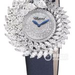 Basic Information: Model Number: 77244OR.GG.1272OR.01; Brand: Audemars Piguet; Series: Millenary; Gender: Ladies; Movement: Cal.5201; Manufacturer: Audemars Piguet; Basic Movement: Manual winding, mechanical; Frequency: 21,600 vibrations per hour; Jewels: 19; Parts: 157; Power Reserve: 49 hours; Dimensions: Case Diameter: 39.5 mm; Case Thickness: 9.8 mm; Dial Color: Skeletonized; Dial Shape: Oval; Strap Color: Gold; Clasp Type: Folding Clasp; Case Back: Anti-reflective sapphire crystal; Weight: Not available; Water Resistance: 20 meters; Hour Markers: None; Clasp Spacing: Not available; Lug Spacing: Not available; Material: Case Material: 18K Rose Gold; Dial Material: Opal; Off-center hour, minute, and small seconds dials with rose gold hands (Off-center hour and minute dial: 0.85 carat; Small seconds dial: 0.10 carat). 18K rose gold bezel; anti-reflective sapphire crystal; crown set with a semi-transparent convex sapphire crystal; 18K rose gold strap; includes light blue and black alligator leather strap; 18K rose gold buckle; chronograph functions.