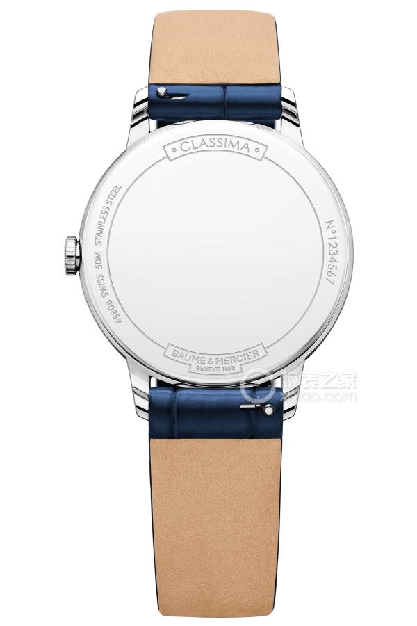 Basic Information ID 10353 Brand Baume & Mercier Series Classima Gender Ladies Movement Movement Model Ronda 704 Manufacturer Unknown Appearance Case Diameter: 31mm Case Thickness: 5.95mm Dial Color: White Dial Shape: Round Strap Color: Blue Buckle Type: Pin Buckle Case Back: Solid Weight: Not Available Water Resistance: 50 meters Hour Marker Type: Bat Hour Markers Buckle Spacing: Not Available Lug Spacing: Not Available Materials Case Material: Stainless Steel Dial Material: Roman Numerals; Hands: Rhodium Plated, Leaf-Shaped Bezel Material: Stainless Steel, Polished Crystal Material: Scratch-Resistant Sapphire Crystal Crown Material: Stainless Steel Strap Material: Alligator Leather Buckle Material: Stainless Steel Functions: Date Display