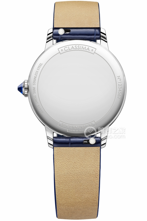 Basic Information ID 10804 Brand Baume & Mercier Series Classima Movement Type Quartz Gender Women’s Limited Edition 150 Movement Model Ronda 788 Movement Type Quartz Manufacturer Unknown Battery Life 3 Years Appearance Case Diameter: 31 mm Case Thickness: 7.1 mm Dial Color: Blue Dial Shape: Round Strap Color: Blue Clasp Type: Pin Buckle Case Back: Solid Weight: Not Available Water Resistance: 50 meters Hour Marker Type: Bat Hour Markers Roman Numerals Clasp Spacing: Not Available Lug Spacing: Not Available Materials Case Material Stainless Steel Dial Material Not Available Bezel Material Not Available Crystal Material Scratch-resistant Sapphire Crystal Glass Crown Material Stainless Steel Cabochon Crown with Blue Synthetic Spinel Strap Material Square Scale Alligator Leather Clasp Material Stainless Steel Functions Date Display Moon Phase