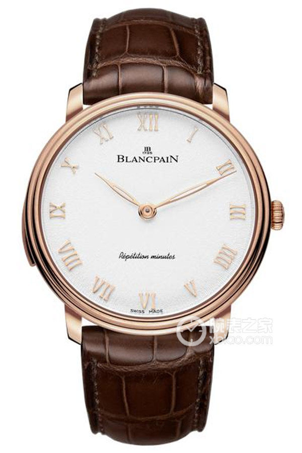 Basic Information Number: 6635-3642-55B Brand: Blancpain Series: Classic Movement Type: Automatic Mechanical Gender: Men’s Movement Model: 35 Movement Type: Automatic Mechanical Manufacturer: Blancpain Movement Diameter: 23.90 mm Movement Thickness: 4.85 mm Number of Jewels: 39 Number of Parts: 360 Power Reserve: 40 hours Exterior Case Diameter: 40 mm Case Thickness: 9.9 mm Dial Color: Off-white Dial Shape: Round Strap Color: Dark Brown Clasp Type: Folding Clasp Case Back: Transparent Weight: Not available Water Resistance: 30 meters Hour Markers: Roman numerals Clasp Spacing: Not available Lug Spacing: 21 mm Materials Case Material: 18K Red Gold Dial Material: Off-white Printed Bezel Material: 18K Red Gold Crystal Material: Sapphire Crystal Glass Crown Material: 18K Red Gold Strap Material: Alligator Leather with Alzavel Calfskin Lining Clasp Material: 18K Red Gold Functions: Minute Repeater