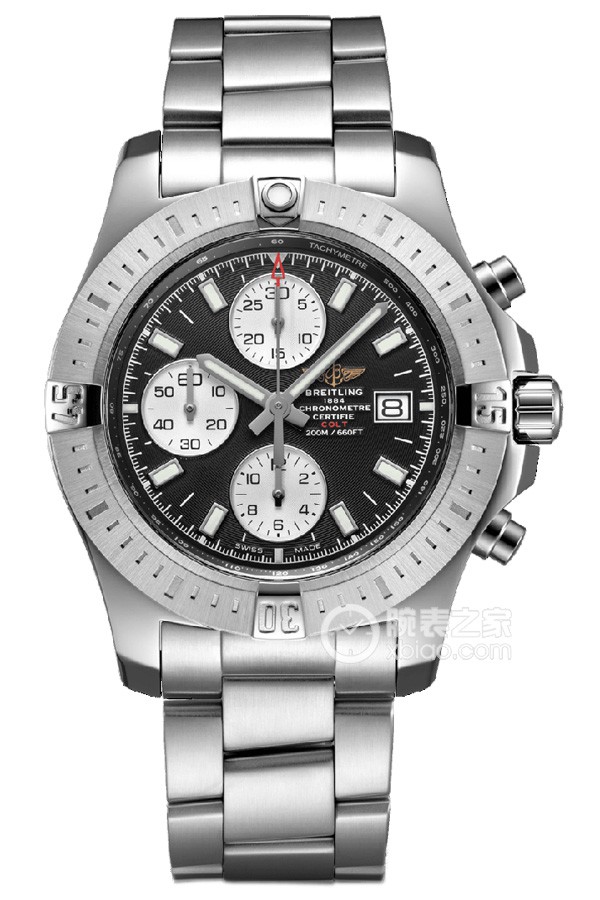 Basic Information ID: A13388111B1A1 Brand: Breitling Movement Type: Automatic Mechanical Gender: Men’s Movement Model: Cal.13 Movement Type: Automatic Mechanical Manufacturer: Breitling Base Movement: ETA 7750 Movement Diameter: 30mm Frequency: 28,800 vibrations per hour Number of Jewels: 25 Power Reserve: 42 hours Technical Certification: Swiss Official Chronometer Testing Institute (COSC) Appearance: Case Diameter: 44mm Case Thickness: 14.7mm Dial Color: Black Dial Shape: Round Strap Color: Silver Clasp Type: Folding Clasp Case Back: Solid Weight: 118.95 grams (excluding strap) Water Resistance: 200 meters Hour Marker Type: Bat Hour Markers Luminous Clasp Spacing: Not available Lug Spacing: 22/20mm Materials: Case Material: Stainless Steel Dial Material: Not available Bezel Material: Stainless Steel Crystal Material: Double Anti-reflective Sapphire Crystal Crown Material: Stainless Steel Strap Material: Stainless Steel Clasp Material: Stainless Steel Functions: Date Display, Chronograph