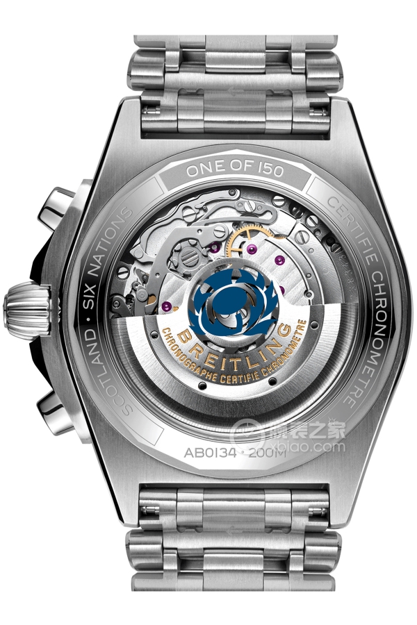 Basic Information: ID: AB0134A51C1A1; Brand: Breitling; Series: Mechanical Chronograph; Movement Type: Automatic; Gender: Men’s; Limited Edition: 150; Movement: Cal.01; Movement Type: Automatic; Manufacturer: Breitling; Movement Diameter: 30mm; Movement Thickness: 7.2mm; Frequency: 28,800 vibrations per hour; Jewels: 40/34/41; Parts: 346/336/334; Power Reserve: 70 hours; Exterior: Case Diameter: 42mm; Case Thickness: 15.1mm; Dial Color: Blue; Dial Shape: Round; Strap Color: Silver; Clasp Type: Not Available; Case Back: Screw-down (Sapphire Crystal Glass) Weight: 198 grams; Water resistance: 200 meters; Hour marker type: baton; Luminous clasp spacing: Not available; Lug spacing: 22 mm; Case material: Stainless steel; Dial material: Not available; Bezel material: Stainless steel with raised hour markers; Unidirectional bezel with ratcheting; Crystal material: Domed sapphire crystal with double anti-reflective coating; Crown material: Stainless steel, onion-shaped crown, screw-down, double gasket; Strap material: Stainless steel; Bracelet material: Ball bearing; Clasp material: Not available; Functions: Date display, Chronograph.