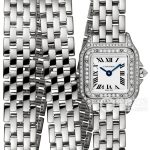 Basic Information ID: WGPN0012 Brand: Cartier Series: PANTHÈRE DE CARTIER Movement Type: Quartz Gender: Ladies Movement Type: Quartz Case Diameter: 20 x 25 mm Case Thickness: 6 mm Dial Color: White Dial Shape: Square Strap Color: Gold Clasp Type: Folding Clasp Case Back: Solid Weight: Not available Water Resistance: 30 meters Hour Markers: Roman numerals Clasp Spacing: Not available Lug Spacing: Not available Materials: Case Material: 18k gold Dial Material: Silver-plated dial, sword-shaped blued steel hands Bezel Material: 18k gold Crystal Material: Sapphire crystal Crown Material: 18k gold, set with a sapphire crystal Strap Material: 18k gold, three-coil bracelet Clasp Material: 18k gold Functions: This watch has no other special functions.