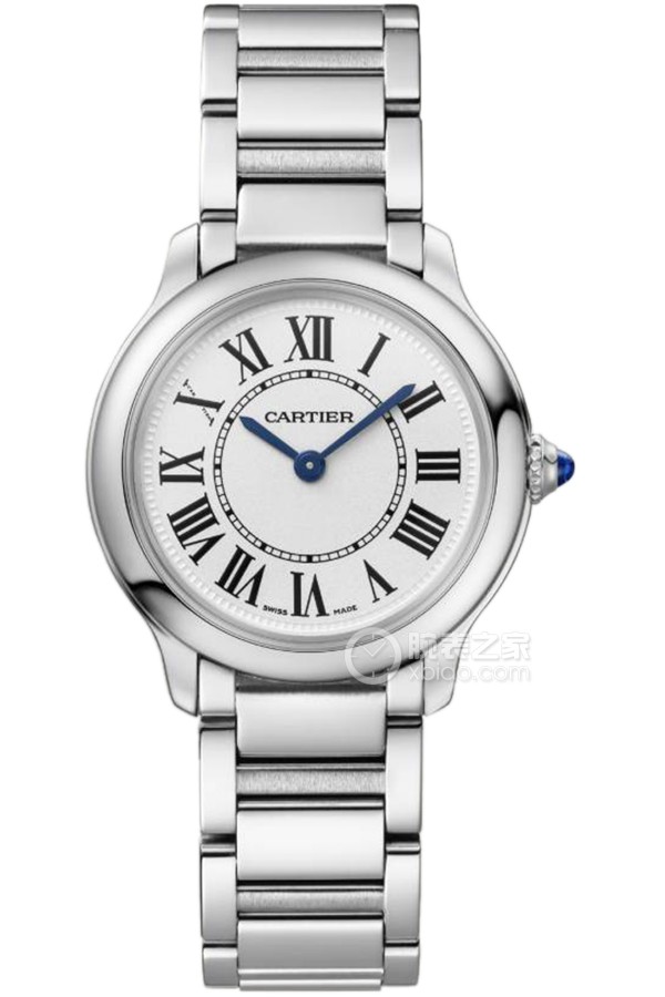 Basic Information ID: WSRN0033 Brand: Cartier Series: RONDE DE CARTIER Movement Type: Quartz Gender: Ladies Movement Type: Quartz Case Diameter: 29mm Case Thickness: 7.54mm Dial Color: White Dial Shape: Round Strap Color: Silver Clasp Type: Folding Clasp Case Back: Solid Weight: Not available Water Resistance: 30 meters Hour Markers: Roman numerals Clasp Spacing: Not available Lug Spacing: Not available Materials: Case Material: Stainless Steel Dial Material: Not available Bezel Material: Stainless Steel Crystal Material: Sapphire Crystal Crown Material: Stainless Steel Round crown with one cabochon synthetic spinel Strap Material: Stainless Steel Clasp Material: Stainless Steel Functions: This watch has no other special functions.
