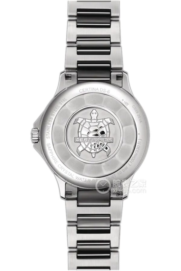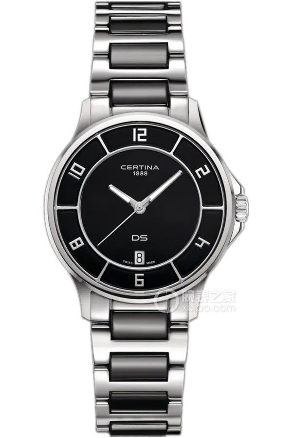 Basic Information ID: C039.251.11.057.00 Brand: Certina Series Aurora DS-6 Gender: Women’s Official Warranty: 3 Years Movement: Movement Model: F05.412 Manufacturer: Unknown Manufacturer Technical Certifications: Chronometer Certification Appearance: Case Diameter: 35mm Case Thickness: 7.55mm Dial Color: Black Dial Shape: Round Strap Color: Silver/Black Clasp Type: Butterfly Clasp Case Back: Solid Weight: Not Available Water Resistance: 100 Meters Hour Marker Type: Bat Hour Markers, Arabic Numerals Clasp Spacing: Not Available Lug Spacing: 18mm Materials: Case Material: 316L Stainless Steel Dial Material: Not Available Bezel Material: 316L Stainless Steel Crystal Material: Sapphire Crystal Crown Material: 316L Stainless Steel Strap Material: 316L Stainless Steel/Ceramic Clasp Material: 316L Stainless Steel Functions: Date Display