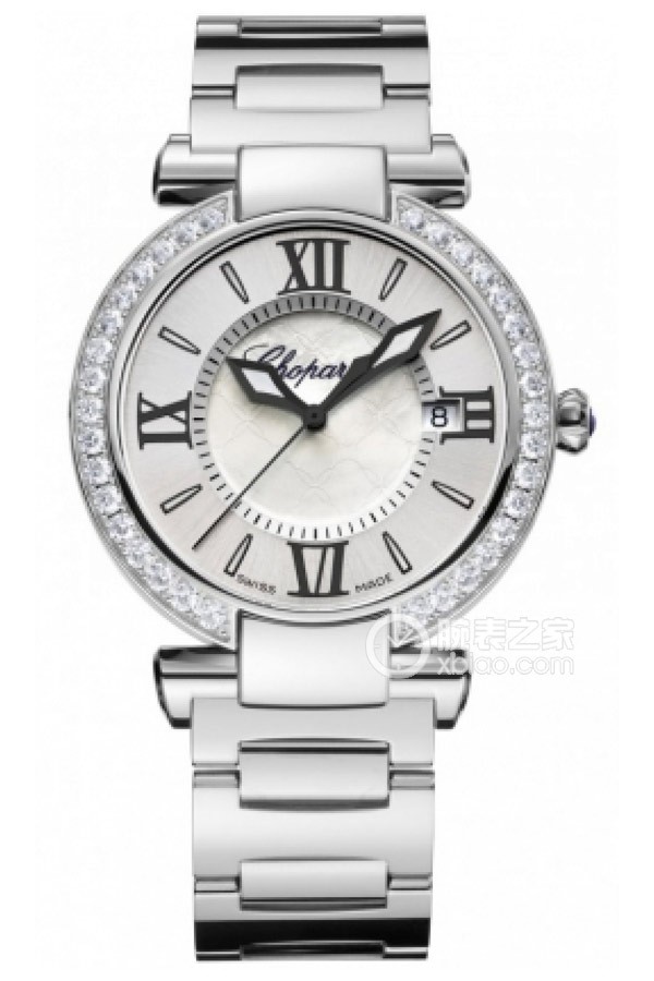 Basic Information Number 388532-3004 Brand Chopard Series IMPERIALE Movement Type Quartz Gender Women’s Movement Movement Type Quartz Case Diameter: 36mm Case Thickness: Not Available Dial Color: Silver Dial Shape: Round Strap Color: Silver Clasp Type: Folding Clasp Case Back: Solid Case Back Weight: Not Available Water Resistance: 50 meters Hour Marker Type: Not Available Clasp Spacing: Not Available Lug Spacing: Not Available Materials Case Material Stainless Steel with Diamonds Dial Material Silver-toned with Mother-of-Pearl in the Center Bezel Material: Not Available Crystal Material Sapphire Crystal Glass Crown Material Stainless Steel Strap Material Stainless Steel Clasp Material Stainless Steel Functions Date Display