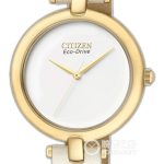Basic Information Number: FE1142-05P Brand: Citizen Series: Eco-Drive Movement Type: Eco-Drive Gender: Ladies’ Movement: Eco-Drive Case Diameter: 29mm Case Thickness: 9mm Dial Color: Gold Dial Shape: Round Strap Color: White Clasp Type: Standard Clasp Case Back: Solid Weight: 70g Water Resistance: 50m Hour Marker Type: Tapered Hour Markers Clasp Spacing: Not Available Lug Spacing: Not Available Materials: Case Material: Stainless Steel Dial Material: Not Available Bezel Material: Stainless Steel Crystal Material: Domed Crystal Glass Crown Material: Not Available Strap Material: Leather Clasp Material: Stainless Steel Functions: Date Display