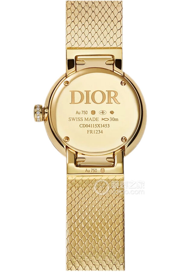 Basic Information ID: CD04115X1453 Brand: Dior Series: LA D DE DIOR Movement Type: Quartz Gender: Women’s Official Warranty: 2 Years Movement Type: Quartz Case Diameter: 25mm Case Thickness: Not Available Dial Color: Diamond Set Dial Shape: Round Strap Color: Gold Clasp Type: Folding Clasp Case Back: Solid Weight: Not Available Water Resistance: 30 Meters Hour Marker Type: None Hour Marker Spacing: Not Available Lug Spacing: Not Available Material: Case Material: 18k Gold Dial Material: Not Available Bezel Material: 18k Gold Set with 50 Brilliant-Cut Diamonds (0.50 Carats*) Crystal Material: Sapphire Crystal Crown Material: 18k Gold Set with 13 Brilliant-Cut Diamonds (0.03 Carats*) Strap Material: 18k Gold Clasp Material: 18k Gold Functions: This watch has no other special functions.