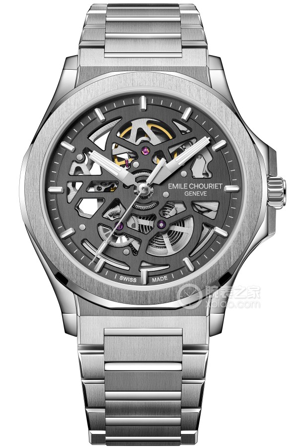 Basic Information ID: 11.1172.G.6.6.680.6 Brand: Emilion Series: Ice Peak Movement Type: Automatic Mechanical Gender: Men’s Movement: EC9307 Movement Type: Automatic Mechanical Manufacturer: Unknown Appearance: Case Diameter: 41 mm Case Thickness: 9.55 mm Dial Color: Skeletonized Dial Shape: Round Strap Color: Silver Clasp Type: Double-Push Folding Clasp Case Back: Transparent Weight: Not Available Water Resistance: 50 meters Hour Marker Type: Bat Hour Markers Luminous Clasp Spacing: Not Available Lug Spacing: 13 mm Materials: Case Material: Stainless Steel Dial Material: Dark Gray Skeletonized Dial, Luminous Bat Hour Markers, Luminous Hands Bezel Material: Stainless Steel Crystal Material: Round Flat Synthetic Sapphire Crystal Crown Material: Stainless Steel Strap Material: Stainless Steel Clasp Material: Not Available Functions: This watch has no other special functions.