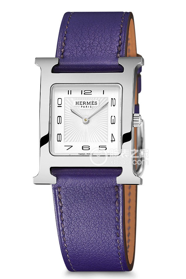 Basic Information ID: W036797WW00 Brand: Hermes Series: HEURE H Movement Type: Quartz Gender: Women’s Movement Type: Quartz Case Diameter: 26 x 26 mm Case Thickness: Not Available Dial Color: White Dial Shape: Square Strap Color: Purple Clasp Type: Tongue Clasp Case Back: Solid Weight: Not Available Water Resistance: 30 meters Hour Marker Type: Not Available Clasp Spacing: Not Available Lug Spacing: Not Available Materials: Case Material: Steel Dial Material: Not Available Bezel Material: Not Available Crystal Material: Anti-reflective Sapphire Crystal Crown Material: Steel Strap Material: Smooth Iris Calfskin Leather Clasp Material: Steel Functions: This watch has no other special functions.