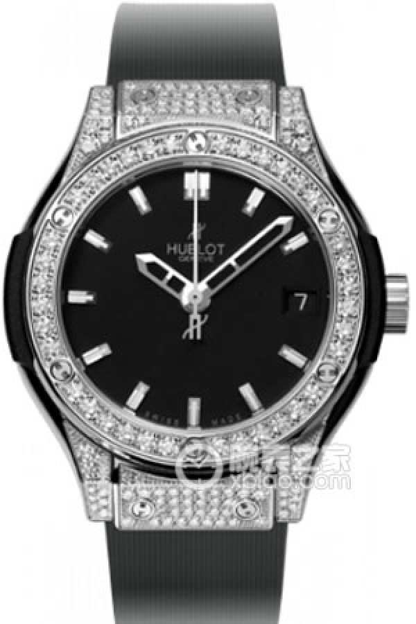 Basic Information ID: 581.NX.1170.RX.1704 Brand: Hublot Series: Classic Fusion Movement Type: Quartz Gender: Ladies Movement: HUB 2912 Movement Type: Quartz Manufacturer: Hublot Appearance: Case Diameter: 33mm Case Thickness: Not Available Dial Color: Black Dial Shape: Round Strap Color: Black Clasp Type: Folding Clasp Case Back: Transparent Weight: Not Available Water Resistance: 50 meters Hour Marker Type: Bat Hour Markers Clasp Spacing: Not Available Lug Spacing: Not Available Materials: Case Material: Titanium Alloy with Diamonds Dial Material: Not Available Bezel Material: Titanium Alloy with Diamonds Crystal Material: Sapphire Crystal Glass Crown Material: Titanium Alloy Strap Material: Rubber Clasp Material: Stainless Steel Functions: Date Display