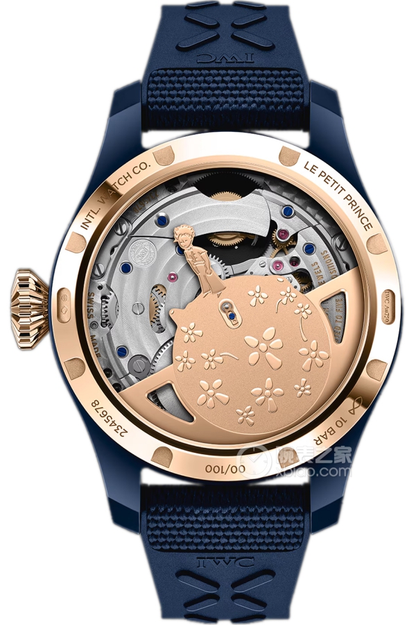 Basic Information: ID: IW504901; Brand: IWC; Series: Pilot’s Watch; Movement Type: Automatic; Gender: Men’s; Limited Edition: 100; Movement: Movement Model: 51950; Movement Type: Automatic; Manufacturer: IWC; Frequency: 19,800 vibrations per hour; Number of Jewels: 54; Number of Parts: 447; Power Reserve: 168 hours; Exterior: Case Diameter: 46.5 mm; Case Thickness: 16.1 mm; Dial Color: Blue; Dial Shape: Round; Strap Color: Blue; Clasp Type: Folding Clasp; Case Back: Transparent; Weight: Not available; Water Resistance: 100 meters; Hour Markers: Arabic numerals; Clasp Spacing: Not available; Lug Spacing: Not available; Materials: Case Material: Ceramic; Dial Material: Not available; Bezel Material: Ceramic; Crystal Material: Sapphire Crystal; Crown Material: 18K 5N Gold; Strap Material: Rubber; Clasp Material: 18K 5N Gold; Functions: Date Display, Day Display, Month Display, Perpetual Calendar, Moon Phase, Tourbillon.
