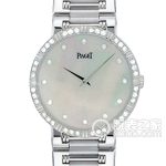 Basic Information Number: G0A37196 Brand: Piaget Series: LIMELIGHT GALA Movement Type: Quartz Gender: Ladies Movement Model: Cal.56P Movement Type: Quartz Manufacturer: Piaget Appearance: Case Diameter: 40×32 mm Case Thickness: 9.5 mm Dial Color: Diamond-set Dial Shape: Oval Strap Color: Dark Brown Clasp Type: Not Available Case Back: Solid Weight: Not Available Water Resistance: 20 meters Hour Marker Type: Tapered Hour Markers Clasp Spacing: Not Available Lug Spacing: Not Available Materials: Case Material: 18k Rose Gold Diamond-set Dial Material: Set with 441 round brilliant-cut diamonds (approx. 1.2 carats) and 18k Rose Gold Hour Markers Bezel Material: Not Available Crystal Material: Sapphire Crystal Glass Crown Material: Not Available Strap Material: Satin Clasp Material: Set with 9 round brilliant-cut diamonds (approx. 0.3 carats) Functions: This watch has no other special functions.