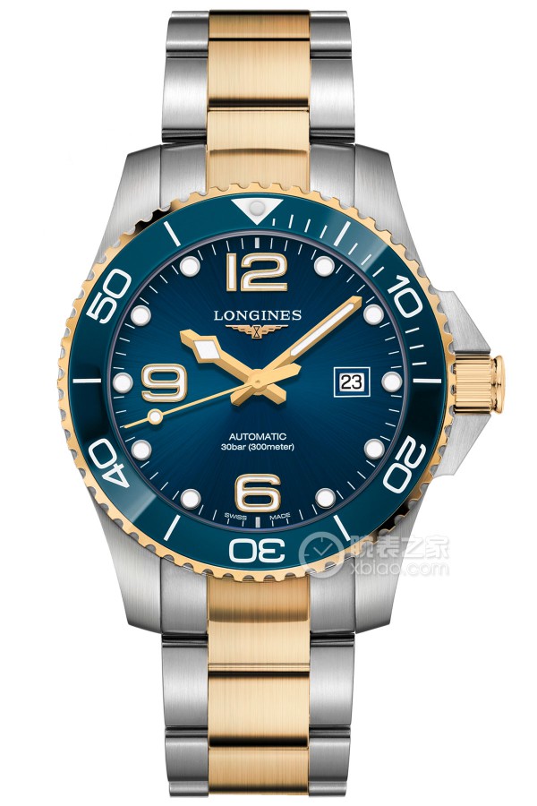 Basic Information ID: L3.782.3.96.7 Brand: Longines Series: Conquest Movement Type: Automatic Mechanical Gender: Men’s Movement Model: L888 Movement Type: Automatic Mechanical Manufacturer: Longines Frequency: 25,200 vibrations per hour Hairspring: Monocrystalline silicon balance wheel Power Reserve: 72 hours Appearance: Case Diameter: 43 mm Case Thickness: Not available Dial Color: Blue Dial Shape: Round Strap Color: Two-tone Buckle Type: Not available Case Back: Screw-down Weight: Not available Water Resistance: 300 meters Hour Marker Type: Arabic numerals Luminous Clasp Spacing: Not available Lug Spacing: Not available Materials: Case Material: Stainless steel Dial Material: Blue sunburst finish, gold-plated hands, set with Arabic numerals and hour markers Bezel Material: Ceramic Crystal Material: Scratch-resistant synthetic sapphire crystal with multi-layer anti-reflective coating on both sides Crown Material: Not available Strap Material: Stainless steel; Two-tone Buckle Material: Not available Functions: Date Display