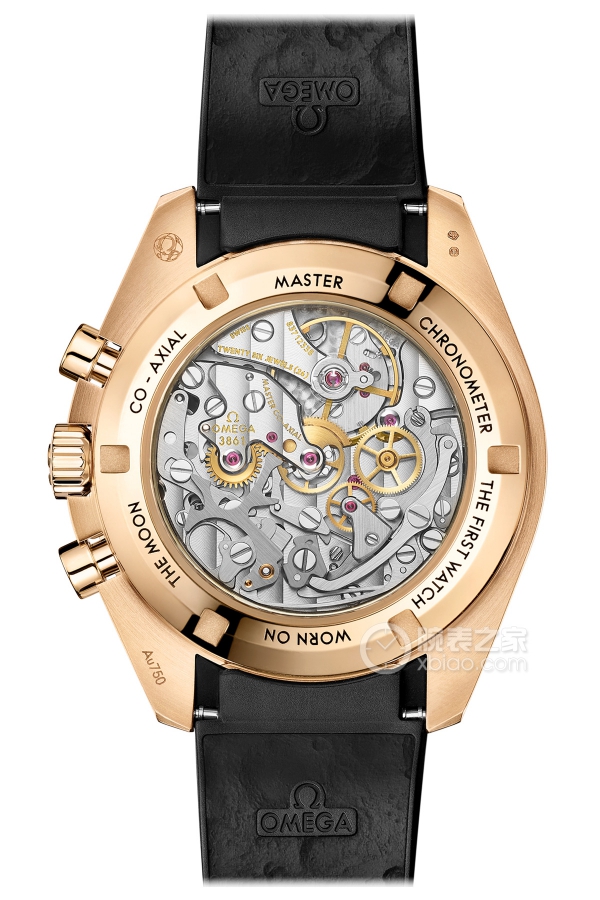 Basic Information Number 310.62.42.50.99.001 Brand Omega Series Speedmaster Movement Type Manual Mechanical Gender Men’s Movement Movement Model 3861 Movement Type Manual Mechanical Manufacturer Omega Balance Wheel Free-sprung Balance Wheel Frequency 21,600 vibrations per hour Hairspring Silicon Hairspring Jewels 26 Power Reserve 50 hours Technical Certification Swiss Observatory Certification, Master Chronometer Appearance Case Diameter: 42 mm Case Thickness: 13.2 mm Dial Color: Gold Dial Shape: Round Strap Color: Black Clasp Type: Folding Clasp Case Back: Transparent case back with double bevel design and engraved in black “FIRST WATCH WORN ON THE MOON” (the first wristwatch to accompany humans to the moon) Weight: Not available Water Resistance: 50 meters Hour Marker Type: Bat Hour Markers Clasp Spacing: Not available Lug Spacing: 20 mm Material Case Material Moonshine 18K Gold Dial Material Moonshine The 18K gold “stepped” dial features a sunray-brushed effect, with blackened subdials and hour markers. The black ceramic bezel is adorned with tachymeter scales made using OMEGA Ceragold technology and includes the signature “Dot over 90” markings from early Speedmaster models (the dot for 90 is positioned above the numeral). The crystal is scratch-resistant sapphire crystal with an anti-reflective coating. The crown is made of Moonshine 18K gold. The strap is a one-piece rubber strap with a three-dimensional moon face pattern on the inside. The buckle is also made of Moonshine 18K gold. The watch features a chronograph function and is antimagnetic. Thanks to the helpful user duoqinuo for correcting the product specifications.