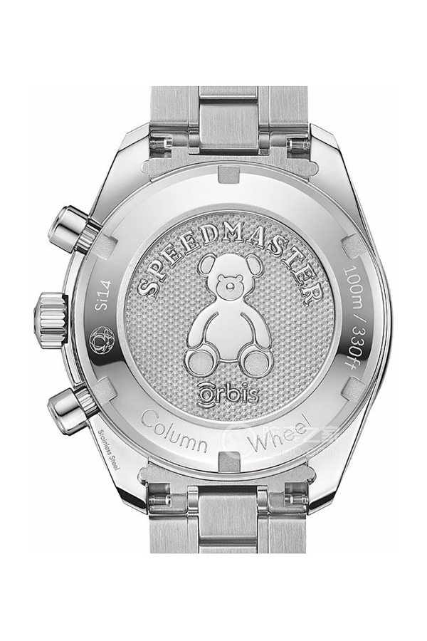 Basic Information Number 324.30.38.50.03.002 Brand Omega Series Speedmaster Movement Type Automatic Gender Orbis Movement Model 3330 Movement Type Automatic Manufacturer Omega Balance Wheel Free Stretcher Balance Wheel Frequency 28,800 rpm Hairspring Si14 Silicon Hairspring Power Reserve 52 hours Technical Certification Swiss Observatory Certification Appearance Case Diameter: 38 mm Case Thickness: Not available Dial Color: Blue Dial Shape: Round Strap Color: Silver Clasp Type: Folding Clasp Case Back: Solid case back, Orbis teddy bear pattern printed on the case back Weight: Not available Water Resistance: 100 meters Hour Marker Type: Bat Hour Markers Clasp Spacing: Not available Lug Spacing: 18 mm Material Case Material Stainless Steel Dial Material Sunburst Blue Dial Features horizontal light blue oval sub-dials with rhodium-plated hour markers and rhodium-plated or blue hands. The central blue chronograph seconds hand is adorned with a unique Orbis teddy bear image. The bezel is made of stainless steel and features a double bezel design; the outer bezel is decorated with a tachymeter scale, while the inner bezel has a blue aluminum tachymeter ring. The crystal is made of scratch-resistant sapphire crystal with an anti-reflective coating. The crown is made of stainless steel. The bracelet and buckle are also made of stainless steel. Functions include a date display and chronograph.