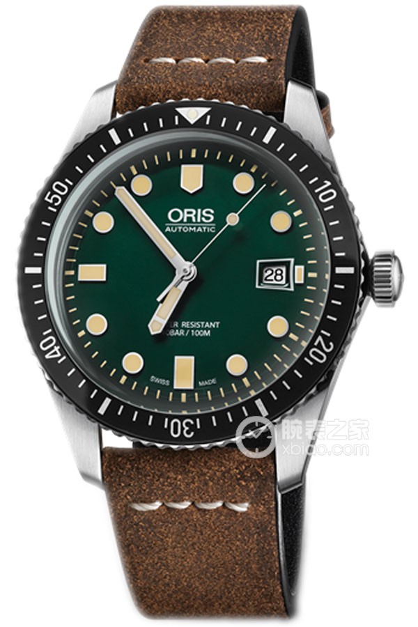 Basic Information ID: 01 733 7720 4057-07 5 21 02 Brand: Oris Series: Diving Movement Type: Automatic Mechanical Gender: Men’s Movement Model: 733 Movement Type: Automatic Mechanical Manufacturer: Oris Base Movement: SW 200-1 Movement Diameter: 25.6 mm Frequency: 28,800 vibrations per hour Jewels: 26 Power Reserve: 38 hours Exterior Case Diameter: 42 mm Case Thickness: Not available Dial Color: Green Dial Shape: Round Strap Color: Dark Brown Clasp Type: Folding Clasp Case Back: Screw-down Case Back Weight: Not available Water Resistance: 100 meters Hour Marker Type: Round Hour Markers Luminous Clasp Spacing: Not available Lug Spacing: 21 mm Materials Case Material: Stainless Steel Dial Material: Green dial, hands and markers are light radium gray luminous material Bezel Material: Stainless Steel, minute markers on the upper bezel Crystal Material: Anti-reflective sapphire crystal Crown Material: Stainless Steel, screw-down safety crown Strap Material: Leather Clasp Material: Stainless Steel Functions: Date Display