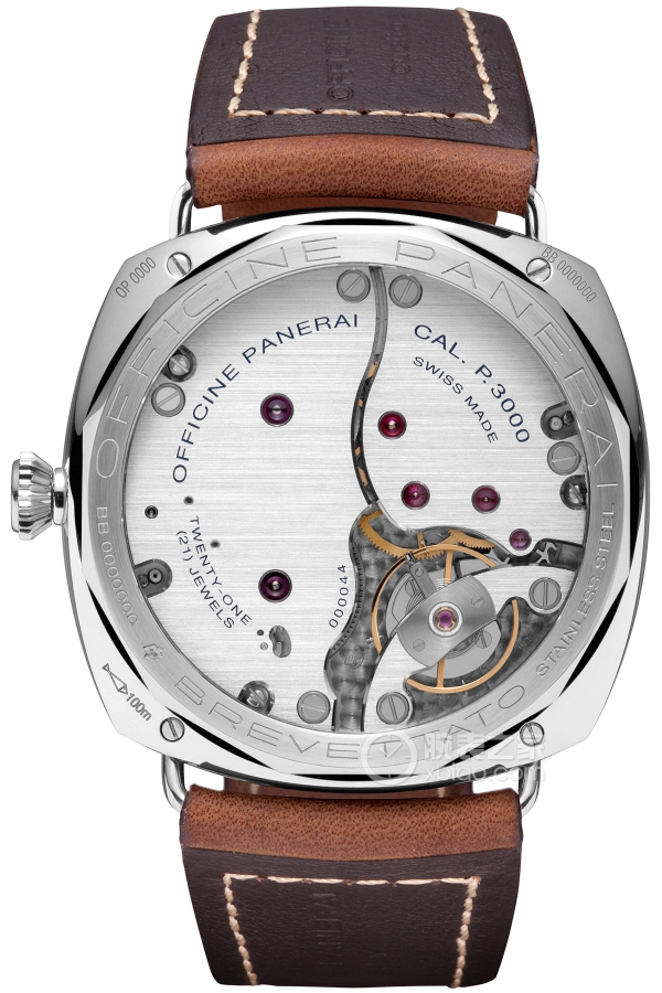 Basic Information Number: PAM00424 Brand: Panerai Series: Raedermill Movement Type: Manual Mechanical Gender: Men’s Movement Model: Cal.P.3000 Movement Type: Manual Mechanical Manufacturer: Panerai Movement Diameter: 37.2 mm Movement Thickness: 5.3 mm Balance Wheel: Glucydur® Balance Wheel Frequency: 21,600 vibrations per hour Shock Resistance: Incabloc Shock Resistance Jewels: 21 Number of Parts: 164 Power Reserve: 72 hours Appearance Case Diameter: 47 mm Case Thickness: Not available Dial Color: Black Dial Shape: Round Strap Color: Brown Buckle Type: Pin Buckle Case Back: Transparent Case Back, Sapphire Crystal Weight: Not available Water Resistance: 100 meters Hour Marker Type: Roman Numerals, Arabic Numerals Clasp Spacing: Not available Lug Spacing: 27 The watch features a case made of polished AISI 316L stainless steel with detachable linear lugs, a Panerai patented design. The dial material is currently unavailable. The bezel is stainless steel. The crystal is sapphire crystal. The crown is stainless steel, a screw-down winding crown engraved with the “OP” logo. The strap is a genuine leather strap engraved with the PANERAI logo. The buckle is made of stainless steel. This watch has no other special functions. Thanks to the helpful user “不戴ル不改名” for making corrections to the product specifications.