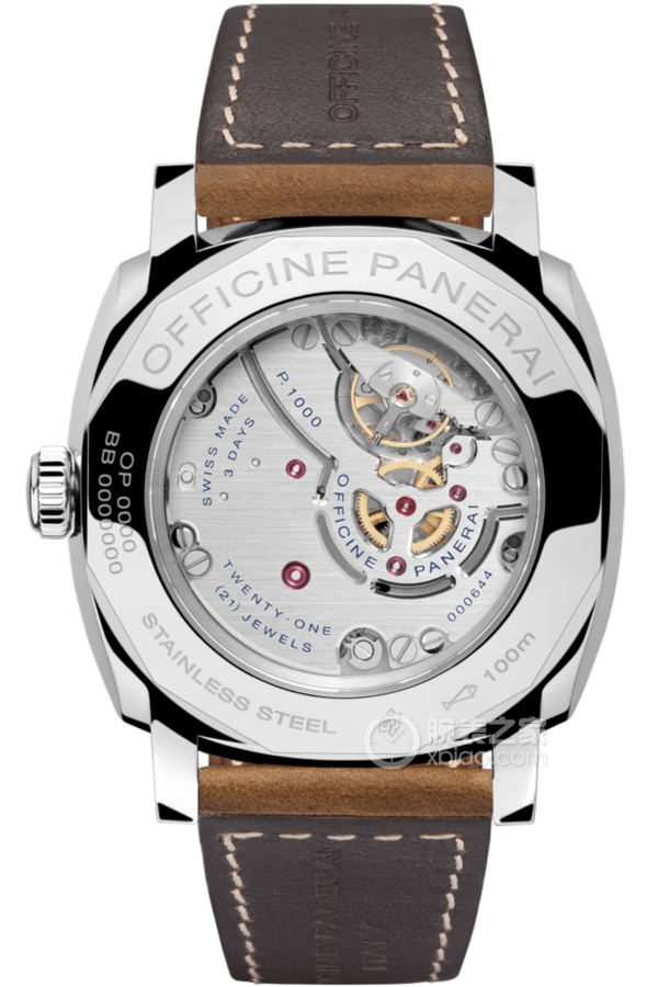 Basic Information Number: PAM00574 Brand: Panerai Series: Raedermere Movement Type: Manual Mechanical Gender: Men’s Movement Model: P.1000 Movement Type: Manual Mechanical Manufacturer: Panerai Movement Thickness: 3.85 mm Balance Wheel: Glucydur® Balance Wheel Frequency: 28,800 vibrations per hour Shock Resistance: KIF Parechoc® Shock-resistant Device Jewels: 21 Power Reserve: 72 hours Appearance Case Diameter: 42 mm Case Thickness: Not available Dial Color: Black Dial Shape: Round Strap Color: Brown Buckle Type: Pin Buckle Case Back: Transparent Weight: Not available Water Resistance: 100 meters Hour Marker Type: Bat Hour Markers: Arabic Numerals Clasp Spacing: Not available Lug Spacing: Not available Materials Case Material: 316L Stainless Steel Dial Material: With Bright Arabic Numerals and Hour Markers Bezel Material: 316L Stainless Steel Crystal Material: Sapphire Crystal Glass Crown Material: Stainless Steel Strap Material: Assolutamente Calfskin Buckle Material: Stainless Steel Functions: This watch has no other special functions.