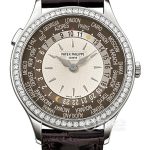 Basic Information Number 7130R-001 Brand Patek Philippe Series Complications Movement Type Automatic Mechanical Gender Ladies Movement Model Cal.240 HU Movement Type Automatic Mechanical Manufacturer Patek Philippe Movement Diameter 27.5 mm Movement Thickness 3.88 mm Balance Wheel Gyromax with Adjustment Weights Frequency 21,600 vibrations per hour Hairspring Flat Jewels 33 Number of Parts 239 Power Reserve 48 hours Appearance Case Diameter: 36 mm Case Thickness: Not available Dial Color: Dark Brown Dial Shape: Round Strap Color: Dark Chestnut Buckle Type: Pin Buckle Case Back: Not available Weight: Not available Water Resistance: 30 meters In 2024, Patek Philippe implemented a new water resistance standard; this water resistance rating refers to the depth to which the watch can be submerged. Hour marker type: None Hour marker spacing: Not available Lug spacing: Not available Materials: Case material: 18k rose gold Dial material: Not available Bezel material: 18k rose gold with diamonds Crystal material: Sapphire crystal Crown material: 18k rose gold Strap material: Alligator leather Buckle material: Rose gold Functions: World time Thanks to the helpful netizen “Aman Doesn’t Eat Meat” for correcting the product parameters.