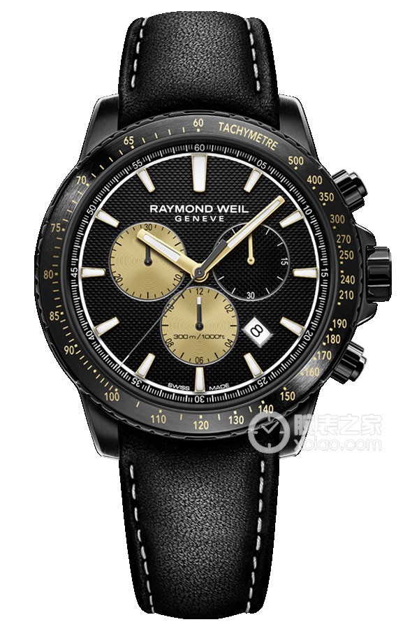 Basic Information: ID: 8570-BKC-MARS1; Brand: Raymond Weil Series Men’s Watch; Movement Type: Quartz; Gender: Men; Limited Edition: 1000; Movement: Quartz Movement; Thickness: 4.4 mm; Case Diameter: 43 mm; Case Thickness: 11.9 mm; Dial Color: Black; Dial Shape: Round; Strap Color: Black; Clasp Type: Folding Clasp; Case Back: Solid; Weight: Not Available; Water Resistance: 300 meters; Hour Marker Type: Bat Markers; Luminous luminous markers; Clasp Spacing: Not Available; Lug Spacing: Not Available; Materials: Case Material: Stainless Steel; Dial Material: Not Available; Bezel Material: Stainless Steel; Crystal Material: Sapphire Crystal; Crown Material: Stainless Steel; Strap Material: Leather; Clasp Material: Stainless Steel; Functions: Date Display, Chronograph