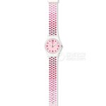 Basic Information: Model Number LK381G; Brand: Swatch; Series: ORIGINALS; Movement Type: Quartz; Gender: Ladies; Movement Type: Quartz; Case Diameter: 25mm; Case Thickness: 7mm; Dial Color: Silver-white; Dial Shape: Round; Strap Color: Silver; Clasp Type: Folding Clasp; Case Back: Not Available; Weight: Not Available; Water Resistance: 30 meters; Hour Marker Type: Not Available; Clasp Spacing: Not Available; Lug Spacing: Not Available; Materials: Case Material: Plastic; Dial Material: Not Available; Bezel Material: Not Available; Crystal Material: Not Available; Crown Material: Not Available; Strap Material: Stainless Steel; Clasp Material: Stainless Steel; Functions: This watch has no other special functions.