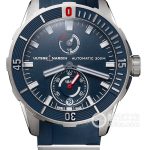 Stainless steel with alternating finishes; ceramic unidirectional rotating bezel with blue 60-minute markers.