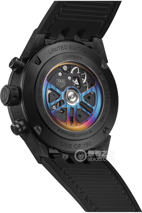 Basic Information Number: CAR5A8AF.FC6415; Brand: TAG Heuer; Series: Carrera; Movement Type: Automatic Mechanical; Gender: Men’s; Limited Edition: 150; Movement Model: Calibre Heuer 02T Movement Type: Automatic Mechanical; Manufacturer: TAG Heuer; Movement Diameter: 31mm; Frequency: 28,800 vibrations per hour; Jewels: 33; Power Reserve: 65 hours; Technical Certification: Swiss Official Chronometer Testing Institute (COSC); Appearance: Case Diameter: 45mm; Case Thickness: Not available; Dial Color: Skeletonized; Dial Shape: Round; Strap Color: Matte Black; Clasp Type: Folding Clasp; Case Back: Transparent, screw-in sapphire crystal; Black PVD-coated Grade 5 titanium case back with special engravings; Weight: Not available; Water Resistance: 100 meters; Hour Markers: Bat-shaped; Luminous; Clasp Spacing: Not available; Lug Spacing: Not available; Materials: Case Material: Titanium; Dial Material: Rhodium-plated; Hour and Minute Hands: Rhodium-plated; Bezel Material: Carbon Fiber; Crystal Material: Anti-reflective domed sapphire crystal; Crown Material: Titanium; Strap Material: Alligator Leather & Rubber; Clasp Material: Titanium; Functions: Date Display, Chronograph, Tourbillon