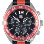Basic Information Number: CAZ1113.FC8189; Brand: TAG Heuer; Series: F1; Movement Type: Quartz; Gender: Men’s; Movement Model: Ronda 5040D Movement Type: Quartz; Case Diameter: 42mm; Case Thickness: Not Available; Dial Color: Black; Dial Shape: Round; Strap Color: Black, Green; Buckle Type: Not Available; Case Back: Case back engraved with a football with “CR7” lettering; Weight: Not Available; Water Resistance: 200 meters; Hour Marker Type: Not Available; Buckle Spacing: Not Available; Lug Spacing: Not Available; Materials: Case Material: Fine brushed black titanium carbide coated stainless steel; Dial Material: Black textured dial; 3 luminescent chronograph subdials; curved hand-applied green hour markers and “12” numerals with black luminescent markings; faceted green minute and hour hands with black luminescent markings; green chronograph hands; green central chronograph seconds hand; green outer edge embossed white minute markers; Bezel Material: Not Available; Crystal Material: Sapphire Crystal; Crown Material: Sandblasted black titanium carbide coated stainless steel “Easy Grip” screw-down crown; Strap Material: NATO Nylon; Buckle Material: Not Available; Functions: Date Display, Chronograph