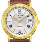 Basic Information ID: T71.3.442.32 Brand: Tissot Series: Fashion Movement Type: Quartz Gender: Men’s Movement Model: ETA 251.272 Movement Type: Quartz Manufacturer: ETA Movement Diameter: 30mm Movement Thickness: 4.6mm Number of Jewels: 22 Case Diameter: 39.62mm Case Thickness: 8.74mm Dial Color: Silver-white Dial Shape: Round Strap Color: Brown Clasp Type: Folding Clasp Case Back: Not Available Weight: Not Available Water Resistance: 30 meters Hour Marker Type: Arabic numerals Clasp Spacing: Not Available Lug Spacing: Not Available Materials: Case Material: 18k Gold Dial Material: Not Available Bezel Material: Not Available Crystal Material: Sapphire Crystal Crown Material: 18k Gold Strap Material: Leather Strap Clasp Material: 18k Gold Functions: Date Display, Chronograph