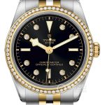 Basic Information Number: M79653-0007; Brand: Tudor; Series: Black Bay; Movement Type: Automatic/Mechanical; Gender: Unisex; Movement Model: MT5400 Movement Type: Automatic Mechanical; Manufacturer: Tudor; Movement Diameter: 30.3 mm; Movement Thickness: 5 mm; Balance Wheel: Inertia Adjustment; Balance Wheel with Adjustment Screw; Frequency: 28,800 vibrations per hour; Hairspring: Non-magnetic silicon hairspring; Jewels: 27; Power Reserve: 70 hours; Case Diameter: 36 mm; Case Thickness: Not available; Dial Color: Gold; Dial Shape: Round; Strap Color: Two-tone; Clasp Type: “T-fit” folding clasp and safety clasp; Case Back: Not available; Weight: Not available; Water Resistance: 100 meters; Hour Markers: Diamond-set; Clasp Spacing: Not available; Lug Spacing: Not available; Materials: Case Material: Polished and brushed steel; Dial Material: Champagne-colored decorative flat dial with diamond hour markers; Bezel Material: Fixed gold outer ring with diamonds; Crystal Material: Sapphire crystal; Crown Material: Gold screw-down winding crown with embossed Tudor rose logo; Strap Material: Polished and brushed gold and steel; Clasp Material: Stainless steel; Functions: This watch has no other special functions.