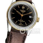 Tudor Jade 53023 – Gold Dial Jacquard Gold Bezel with Diamonds and Black Lizard Leather Strap Automatic machinery, stainless steel, 31mm