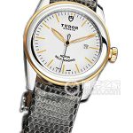 Tudor Jade 53023 – Gold Dial Jacquard Gold Bezel with Diamonds and White Lizard Leather Strap Automatic machinery, stainless steel, 31mm