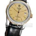 Tudor Jade 55023 – Gold Dial Jacquard Bezel with Diamonds, Burgundy Javanese Leather Strap Automatic machinery, stainless steel, 36mm